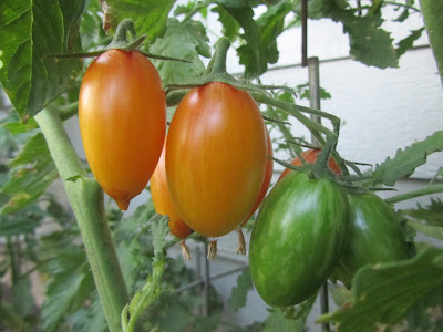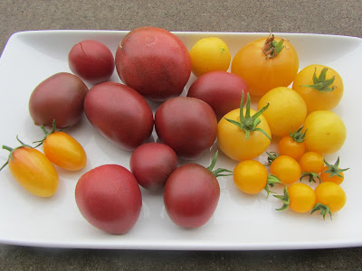 The nightly temperatures have fallen enough that the large tomatoes are no longer ripening. But the smaller varieties and the cherry types keep plugging along. A nice harvest for mid-October.